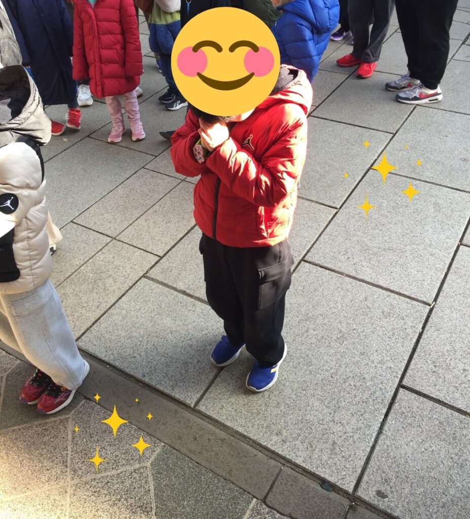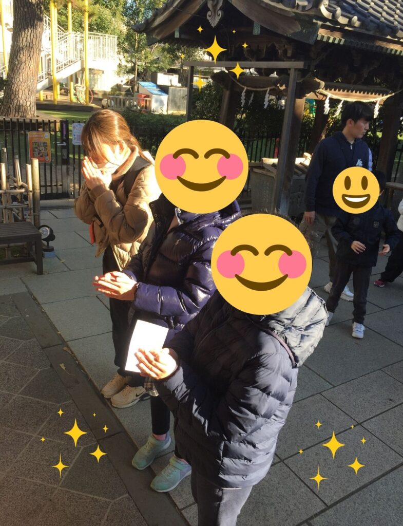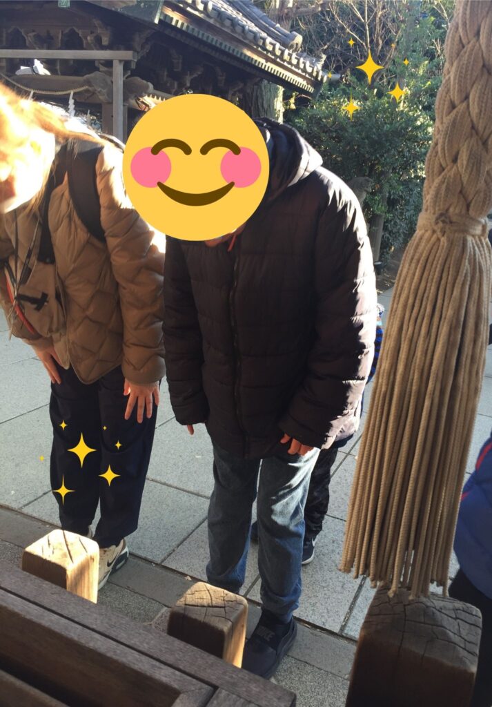 神社に到着したら、みんなで参拝の仕方を確認!!